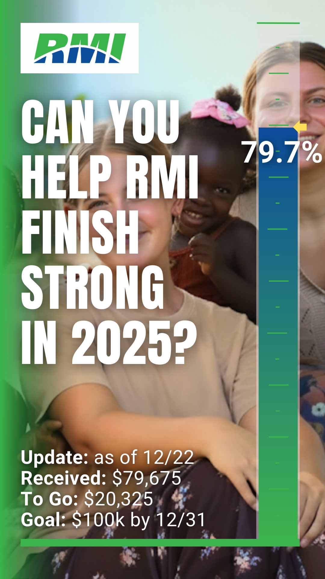 We're making great progress. With only 9 days left, we're currently at 79.7% of our goal. We are incredibly grateful for those who have already given. For those who have not yet given, would you prayerfully consider a special gift to help us finish strong?